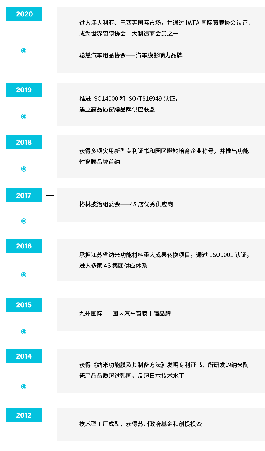 公司現(xiàn)已成為蘇州園區(qū)苗圃上市培育企業(yè)、蘇南國家自主創(chuàng)新區(qū)瞪羚企業(yè),并獲得江蘇省科技型中小企業(yè)、江蘇省民營科技企業(yè)、國家高新技術(shù)企業(yè)等證書。并成功為國內(nèi)外幾十家窗膜品牌商、服務(wù)商、4S集團(tuán)和主機(jī)廠提供高品質(zhì)窗膜產(chǎn)品的定制服務(wù),形成完整的服務(wù)體系,可為客戶提供及時(shí)、快捷的服務(wù)與支持,為您的發(fā)展提供長久、穩(wěn)定支持。
